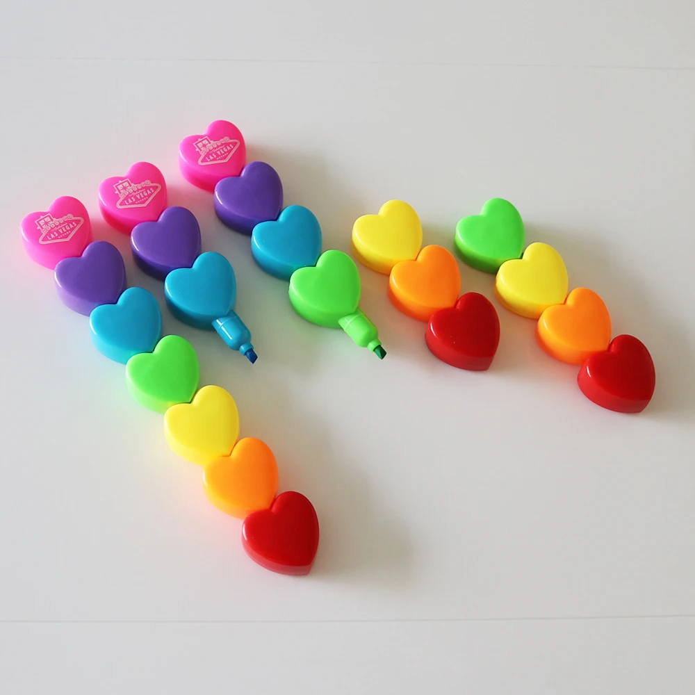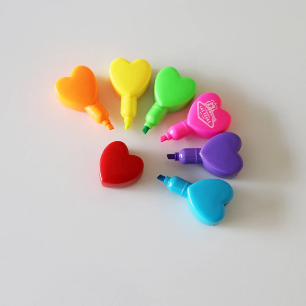 Promotional Colorful Heart Detachable Flat Mini Aesthetic Highlighter Pen Set
